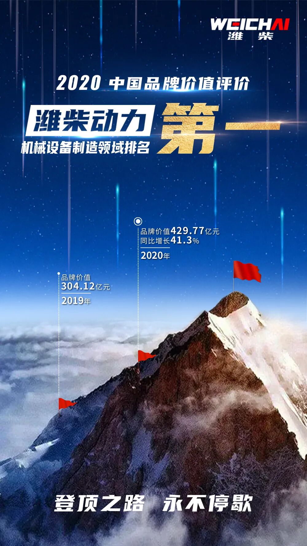 5月10日,第四个中国品牌日之际,2020中国品牌价值评价信息发布会召开,潍柴动力以429.77亿元品牌价值,在机械设备制造领域排名。该活动由新华社指导,中国品牌建设促进会等机构联合举办。