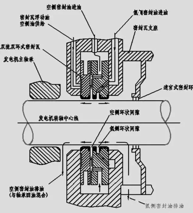 当发电机内充有氢气或主轴正在转动时,必须保持轴密封瓦处的密封油压。