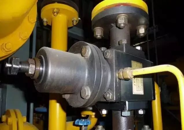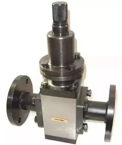 减压阀安装在高压备用油源管道上,是一种双阀座结构。调整螺钉使入口高压降至所需的低压输出。螺钉旋进出口压力增高,反之相反。在减压阀出口处引出一压力信号接至减压阀控制室下腔,起阻尼作用,以减小出口压力波动。
