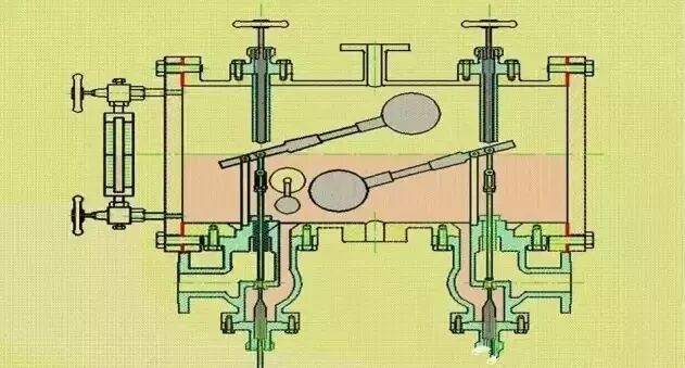 发电机氢侧回油箱(如下图)内装有2个上浮球阀,一个连接空侧密封油油路中滤网的出口,为油箱的补油阀。另一个连接空侧密封油泵的进口,为油箱的排油阀。